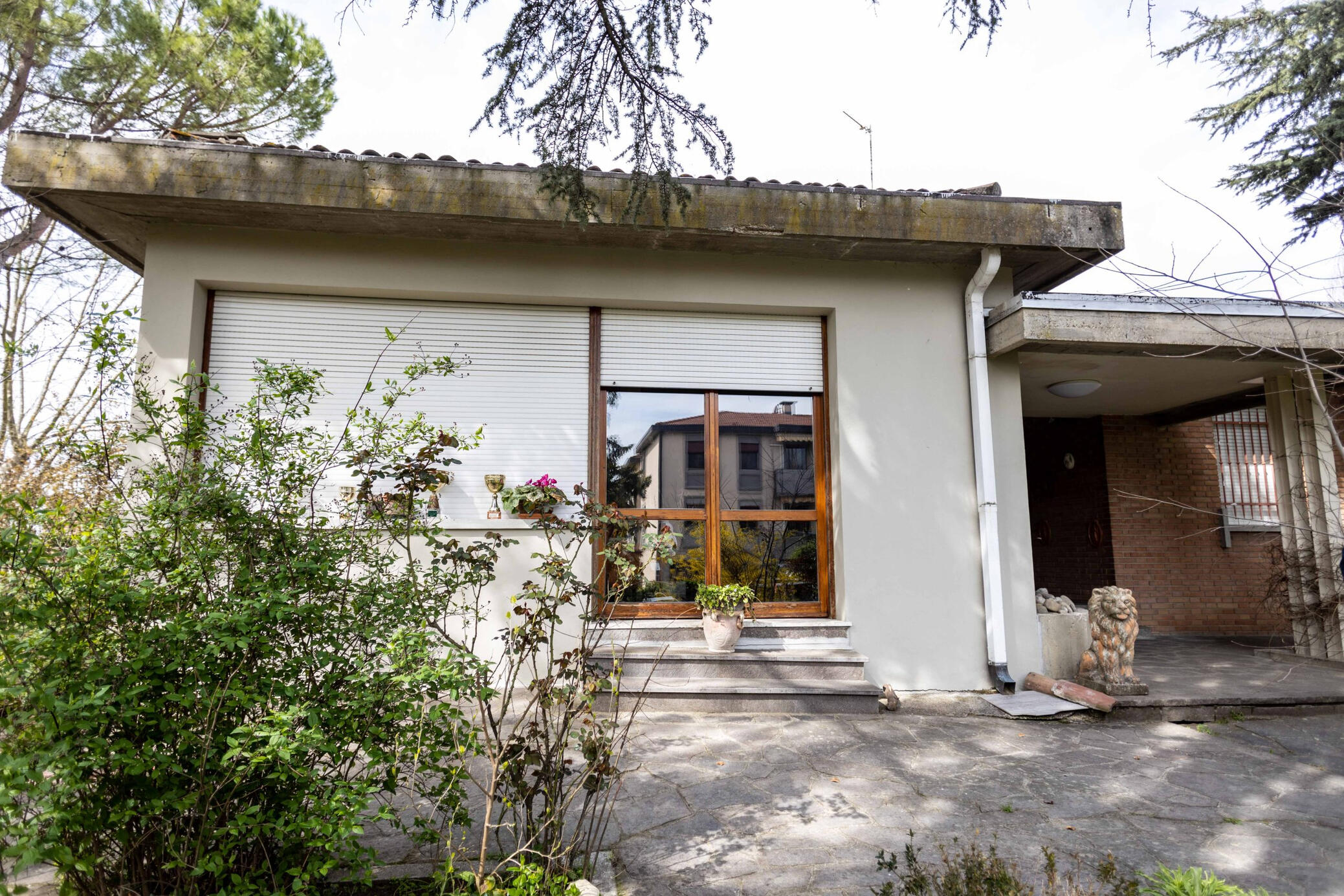 L’edificio è ubicato a ridosso dal centro del paese, nei pressi di Villa Beatrice e nelle vicinanze dei servizi per il cittadino, in contesto residenziale signorile, tranquillo e silenzioso. Il fabbricato, realizzato in muratura faccia a vista, si sviluppa su un piano terra parzialmente seminterrato e un piano primo. L’edificio è così composto: PIANO TERRA: taverna con camino, cantine, vano CT, due autorimesse, posti auto esterni antistanti le autorimesse. PIANO PRIMO: zona giorno con open – space a vista luminoso e destinato a diversi usi, sala da pranzo con terrazzino, cucina abitabile con altro terrazzino, studio / stanza pluriuso; zona notte con ampio corridoio, tre camere matrimoniali, ripostiglio e due bagni. Le finiture e gli impianti della casa si trovano in buono stato conservativo poiché oggetto di recenti lavori di manutenzione ordinaria; gli infissi sono in legno Douglas con vetro doppio nella zona giorno, avvolgibili, zanzariere e cancello di sicurezza antistante l’ingresso. Ottimo investimento come immobile a reddito eventualmente frazionabile in 2 unità, ideale anche per una soluzione genitori /figli. Interessante per le sue dimensioni, per l’ampiezza e la luminosità delle stanze, per il suo bellissimo ed ampio giardino e per la sua posizione vicina al centro del paese e ai principali servizi. Per maggiori informazioni ed eventuale visita, contattarci via mail oppure telefono.